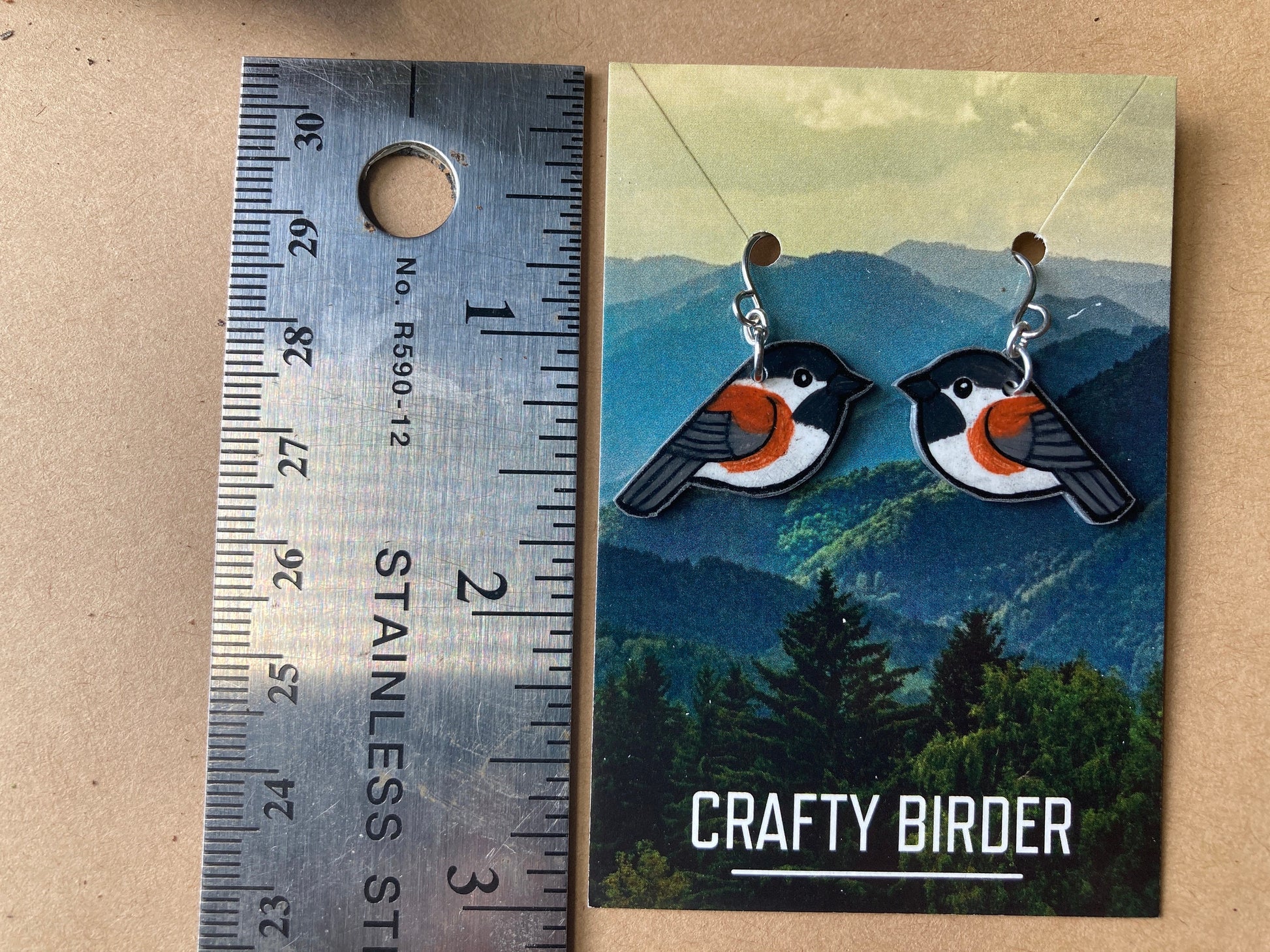 Chestnut backed Chickadee Handmade Unique Bird Earrings Birding Birdwatcher Gift